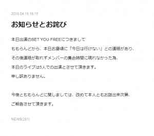BiSは明日以降に決まっているライブに関しては5人体制で出演する。