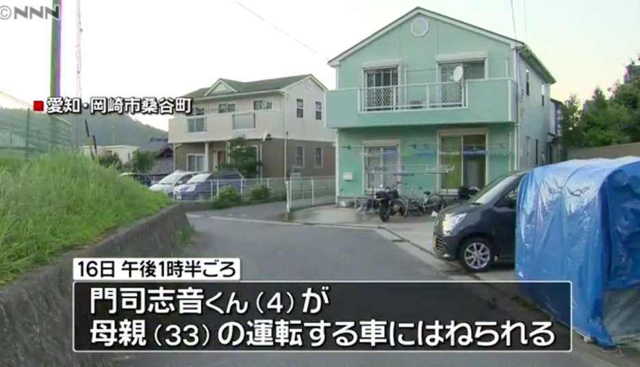 16日午後、愛知県岡崎市の住宅駐車場で4歳の男の子が母親の運転する乗用車にはねられ死亡した。