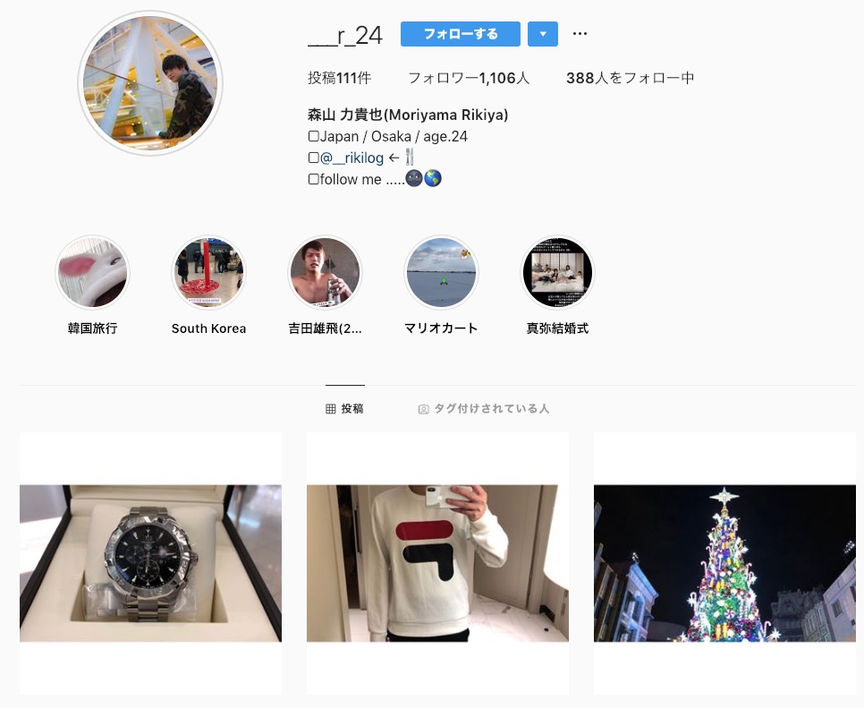 しかし、instagramになるURLなどから、こちらのアカウントが森山力貴也さんのものだと言われているようです。