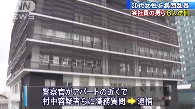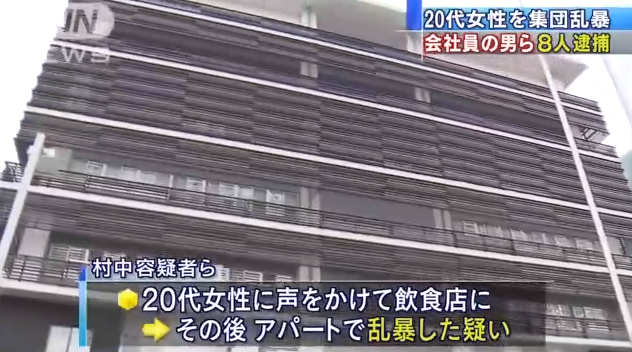 アパートに誘い込み乱暴、村中圭介容疑者ら8人逮捕