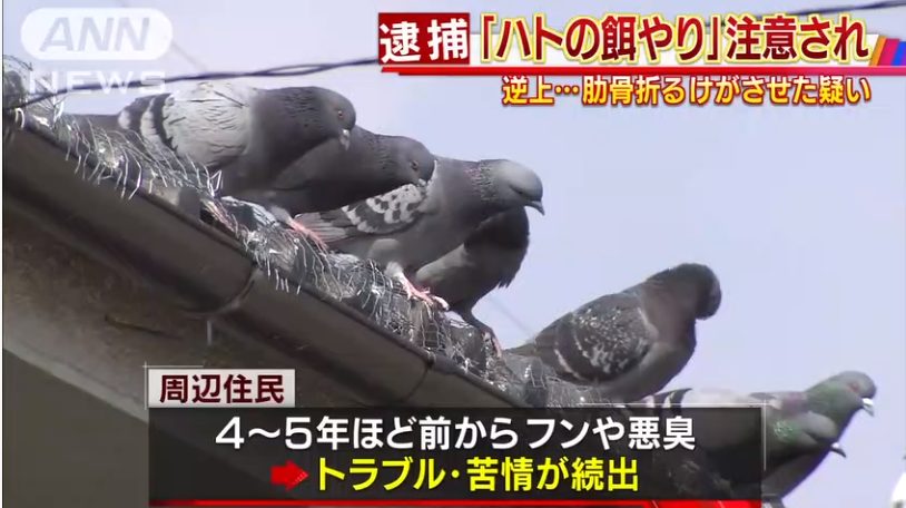 村永容疑者と近隣住民は以前から鳩をめぐってトラブルがあったようで、フンの被害で困り果てた住民が注意をするたびに殴りかかることがよくあったようです。