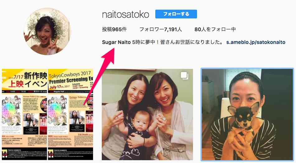この画像に映っているのは内藤聡子さんのインスタグラムアカウント。