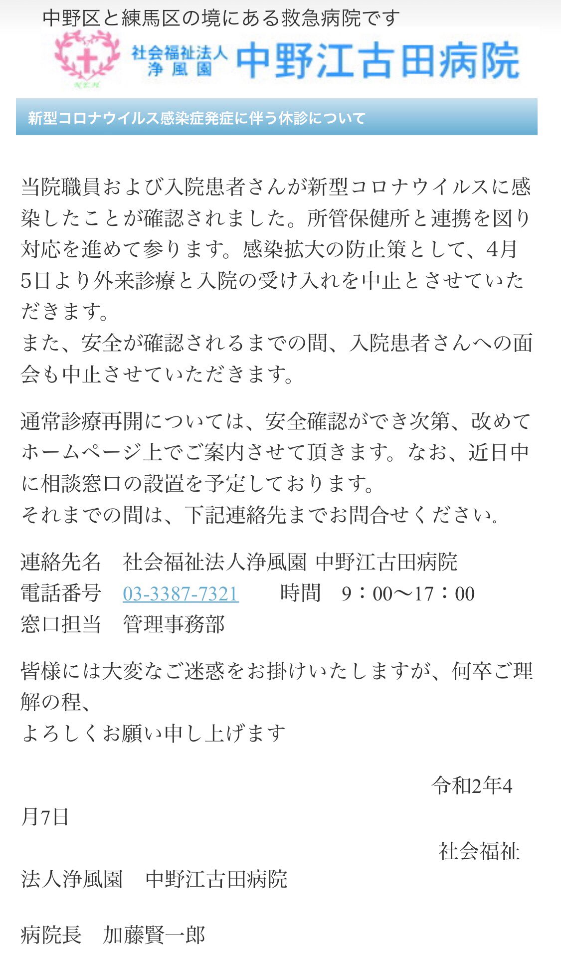 中野江古田病院で90人? 他の病院もいるでしょ…隠してバレるよりも言うなら早く言ってくれた方がいい。怖すぎる