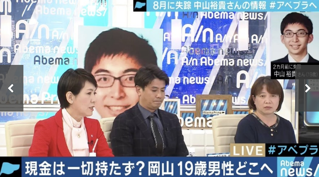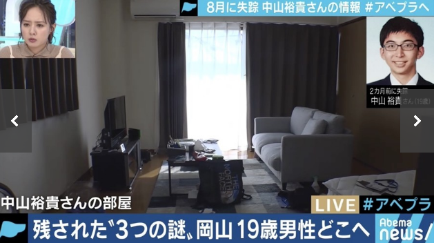 岡山県岡山市の工業高校を今年3月に卒業、津山市にある就職先近くのアパートで一人暮らししていた中山裕貴さん(19)が行方不明になったのは、今年8月25日のこと。