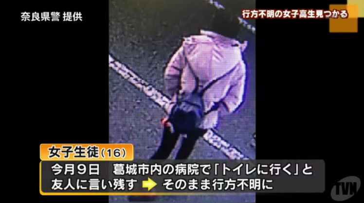 同署によると、女子は9日午前9時45分ごろ、通院していた同県葛城市の病院で、「トイレに行く」と言い残したまま、行方が分からなくなった。直前には同行していた友人に「自分の幸せは自分で見つける」といった趣旨の手紙を渡していたという。