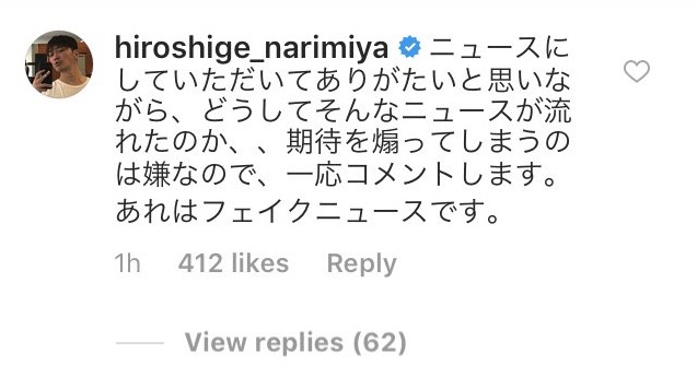 さらにその後、成宮寛貴さん本人もインスタで否定し、芸能界復帰は完全にフェイクニュースだったことがわかりました。