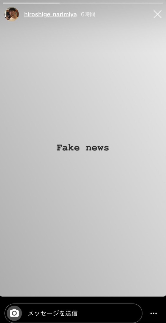 2019年10月3日の朝、成宮寛貴さんがインスタのストーリーズに「Fake News」と投稿。