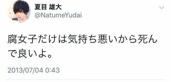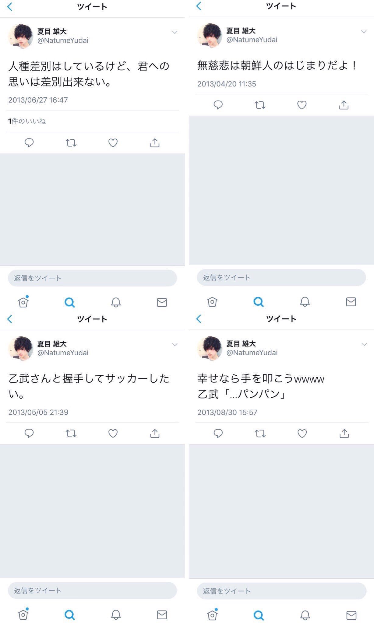 夏目雄大役者としてどうこうレベルじゃなくて1人の人間として狂ってるし、韓国人や中国人のファンもいる今人種差別ツイが掘り起こされるのかなりきついものがある
