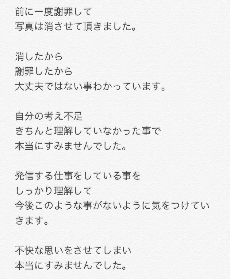 そのことを受けねおさんは画像を削除し、代わりに謝罪文を掲載しました。