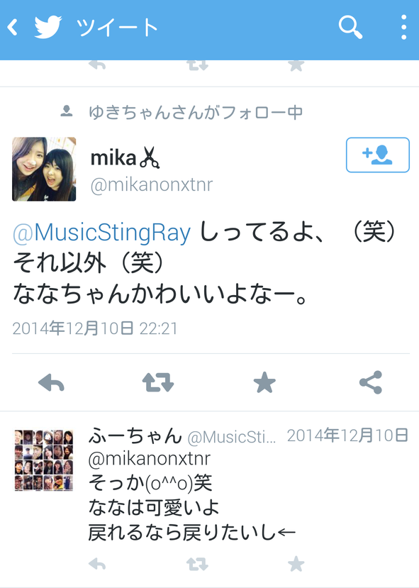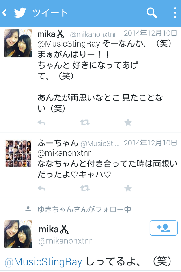 西野七瀬さんの高校時代の彼氏と言われているのが、この「ふーちゃん」というTwitterアカウントの持ち主。「ななちゃんと付き合っていた」など、西野七瀬さんと交際していたことを匂わせるコメントが数多くあります。