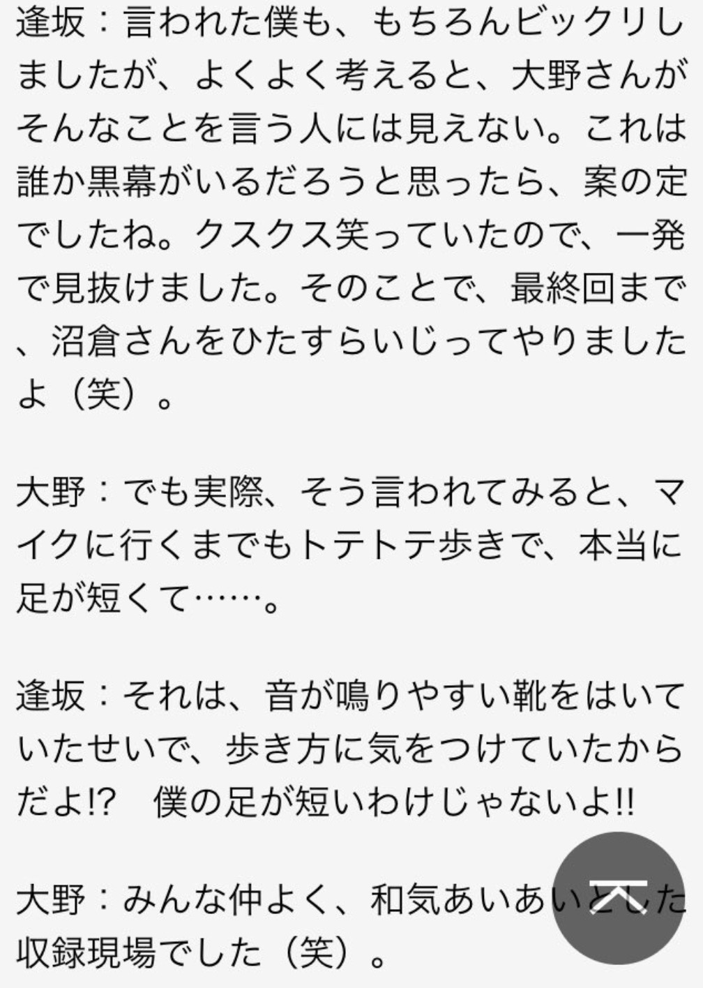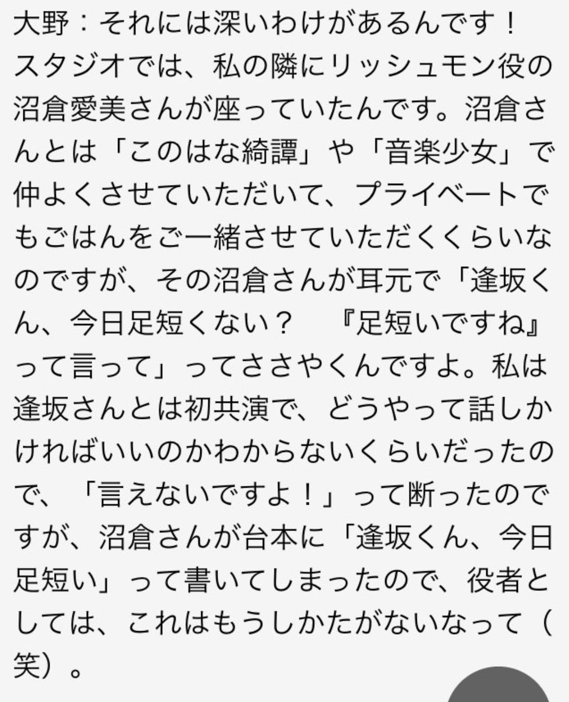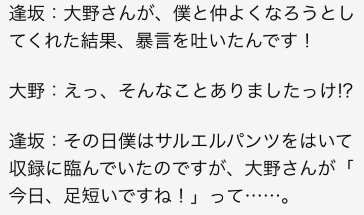 逢坂良太さんと沼倉愛美さんの接点が全く思いつかなくてサーチしまくってたけど出てきたのが「ぬーさんが逢坂さんの足短いとからかって遊ぶ」とかいうあまりにも世界平和なエピソードで死んじゃった pic.twitter.com/uutZf6h66E