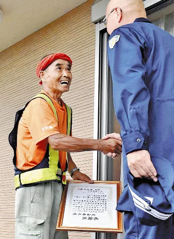 捜索からわずか30分で理稀ちゃんを発見した尾畠さんに、なんと地元警察が感謝状を贈りました。