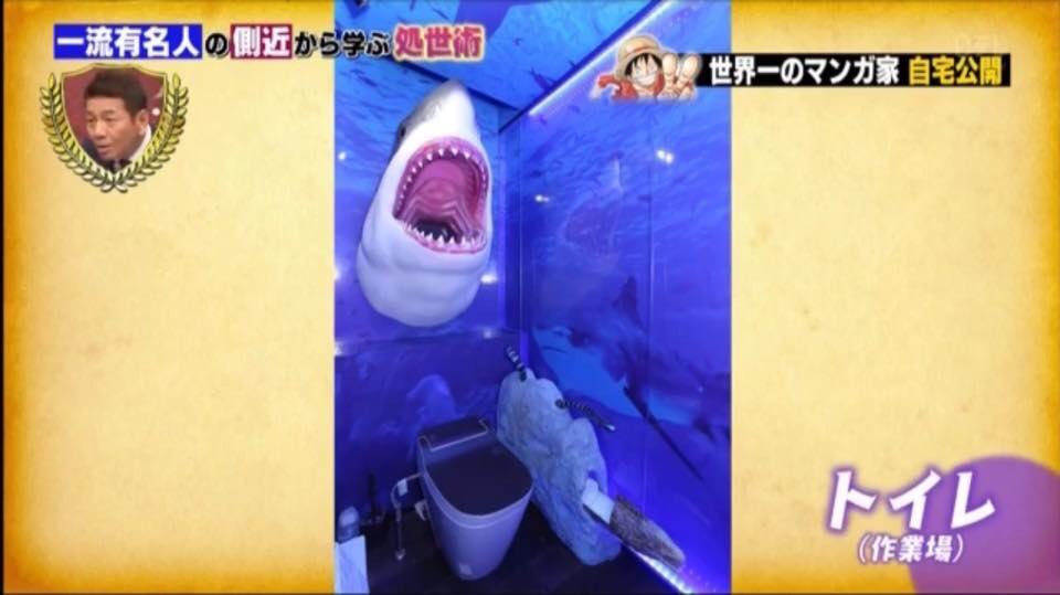最後に紹介されたトイレに至ってはサメの顔が取り付けられていて、深海に居るようなその空間は迫力満点。