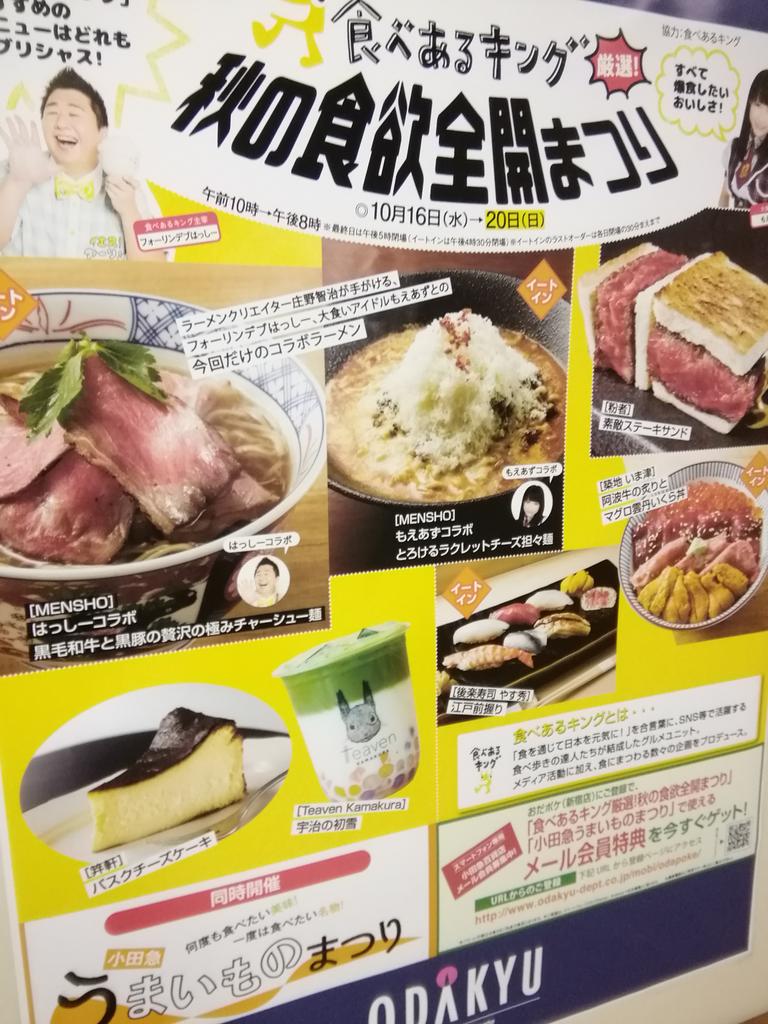 昨日の小田急「秋の食欲全開まつり」で食べたラクレットチーズ坦々麺。すごく美味しかった。こういう納得できる料理、商品に出会えるのはうれしいし楽しい。こういったデパートでの催しは本来大好き。大好きだからよく顔を出す。素敵ステーキサンドは多分レアケース。(^∇^) pic.twitter.com/Rpg0cNRyVO