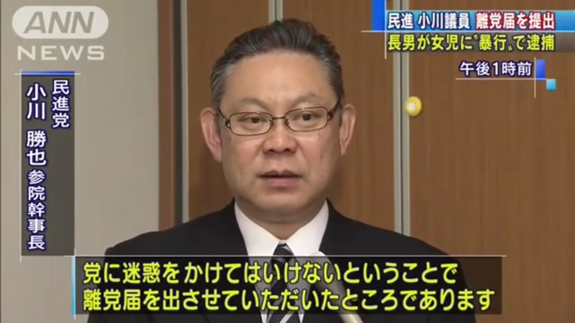 親の小川参議院議員は責任を取って政界から引退しろ。二度と戻ろうと思うな。