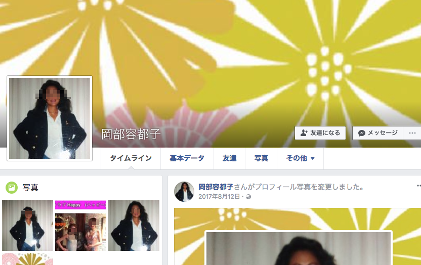 こちらの画像は、ウェブ上で岡部容都子容疑者のものと言われているFacebookアカウント。