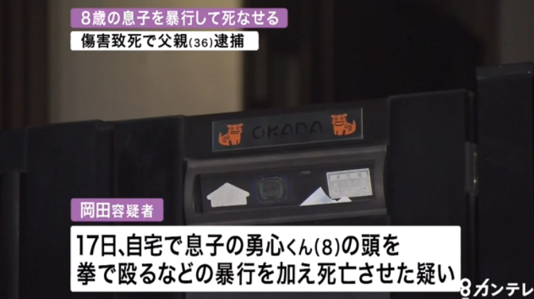 一家は岡田容疑者と妻、勇心君の3人家族のようで、勇心君の身体にあざなどは無かったとのことです。