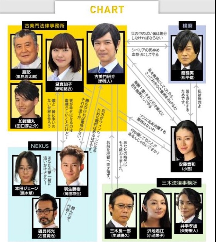しかし、確かな無罪の証拠が無く苦戦していた所“最強の弁護士がいる”と言われ、訪ねるとそこは古美門研介の事務所だったのです。