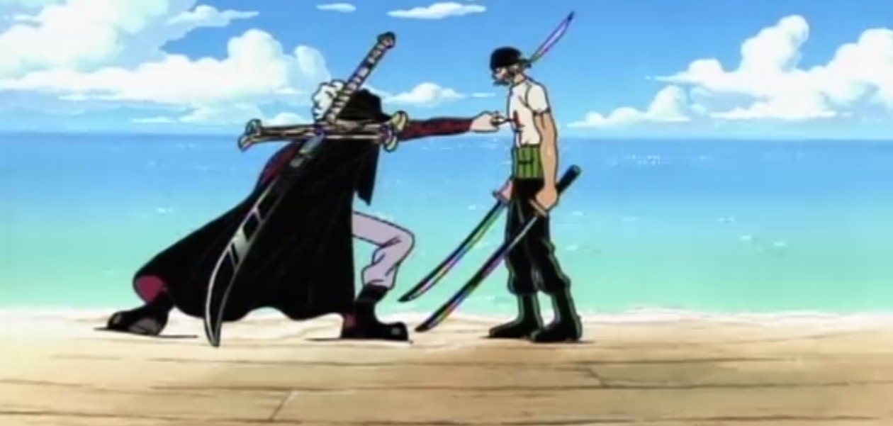 圧倒的な実力のミホークに、ゾロが突然勝負を挑む。