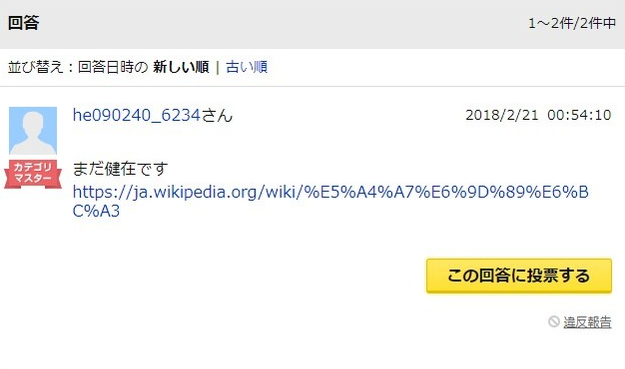 わざわざ一週間前の質問に亡くなる数時間前にまだ健在ですってWiki貼り付けてる奴の方が怖いよね