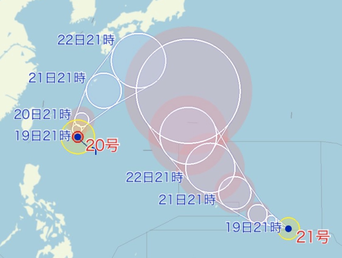 台風21号「ブアローイ」が発生!台風20号と同時に千葉県上陸か?ネットで「オーバーキル過ぎる…」と話題に!