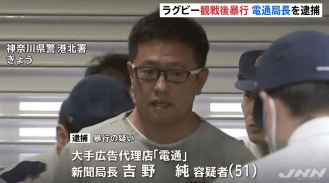 【逮捕】吉野純(電通局長)がラグビーW杯で暴行!ネット上では電通叩きか...一部メディアが忖度で実名報道していない噂も