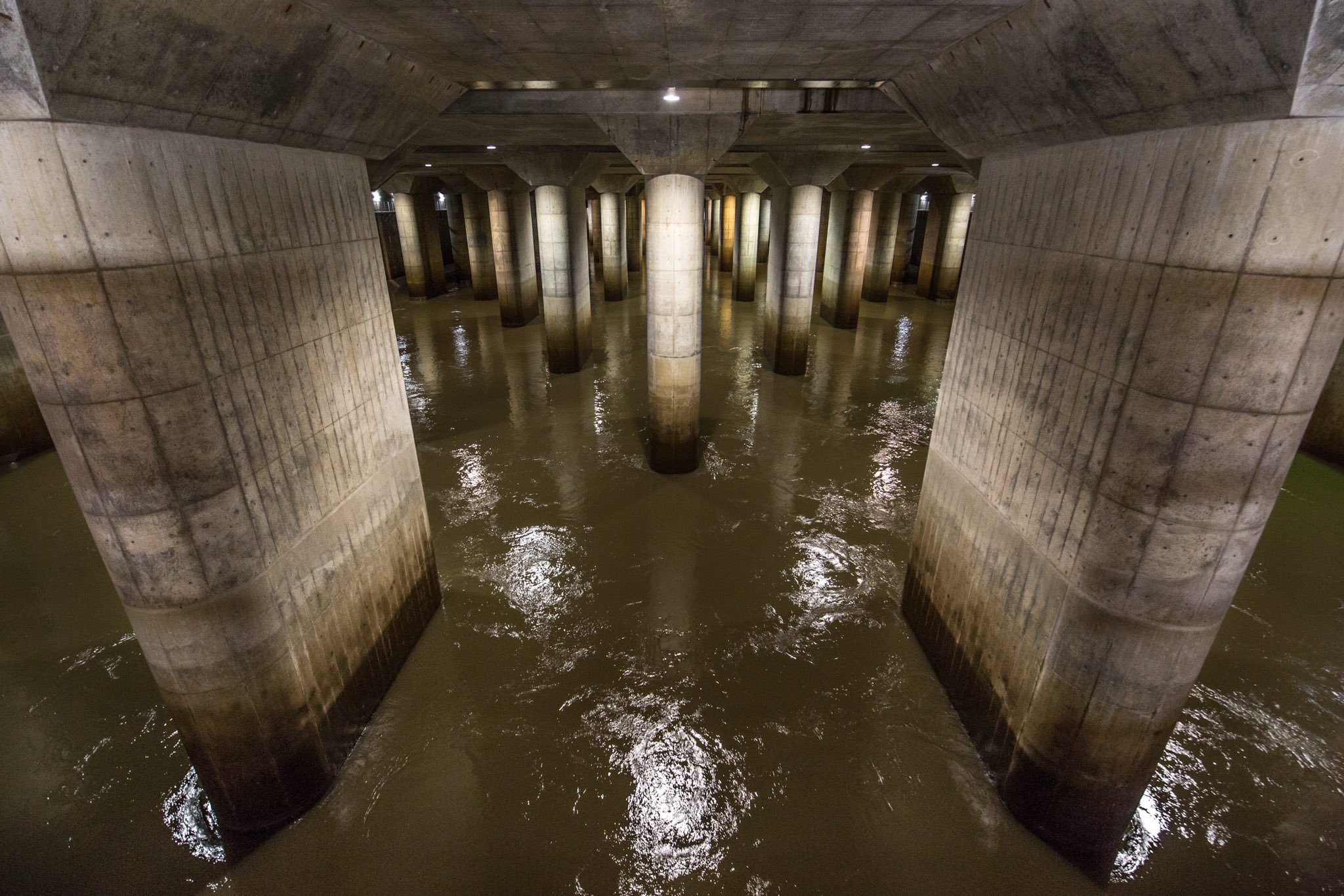 稼働中の『地下神殿』こと首都圏外郭放水路の姿が話題「めっちゃカッコいい」「これが無かったらと思うとゾッとする」
