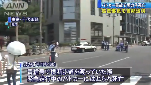 交通ルールを守る見本とならねばいけないはずの警察官が運転するパトカーが青信号で横断歩道を渡っている最中の4歳男児をはね死亡させるという前代未聞の事故が発生しました。