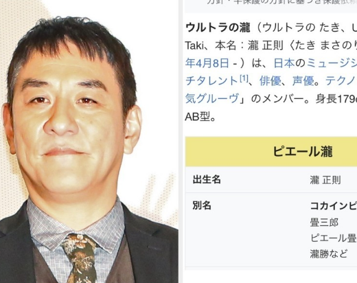 瀧容疑者の出生名や別名欄が、数秒単位で、「コカインピエール瀧」「やっちまったな 瀧 麻薬」「コカイン中毒ピエール」「薬物吸太郎」「ウルトラの瀧コカコーラ」「ネットの王子瀧」などに次々と書き換えられていた。