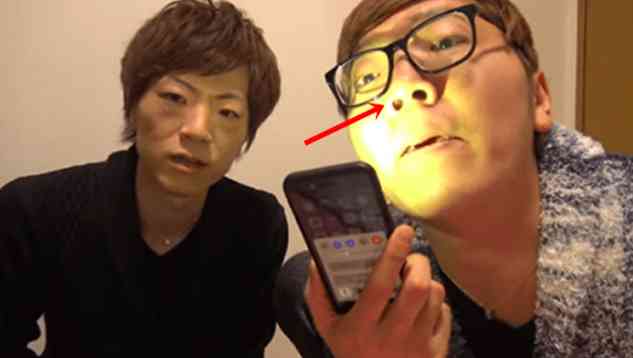 先程の鼻くそ画像では鼻の穴の中にゴミのようなものが見えると指摘されていましたが、実は同じようなことがYouTuberのヒカキンさんにも過去にあったよう。そのときはヒカキンさん自ら検証し、この画像のように顔の下からライトを当てると鼻の中の壁が鼻くそのように見えるという結論を出しています。
