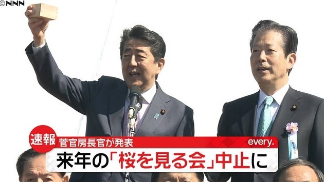 菅官房長官、来年の「桜を見る会」は中止と速報。