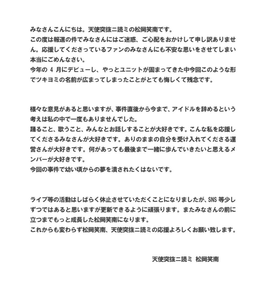 松岡笑南さんのアイドルに懸ける想いが伝わってきますが、今後はセキュリティ面や自己防衛も徹底し再び被害に遭うことは避けて欲しいと願っています。