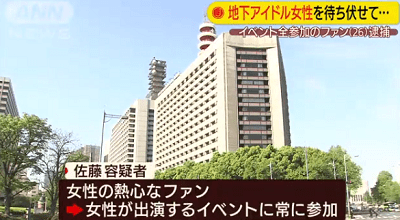 佐藤容疑者は女性が所属するアイドルユニットのファンで、女性と面識があったという。調べに「私がやったことに間違いない」と容疑を認めている。