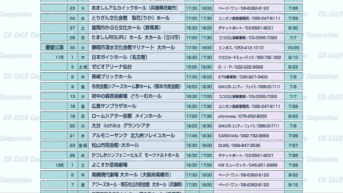 また、仙台の次は長崎、その次は熊本や広島、京都など、短い期間で大きく会場を移動していくツアーのようです。