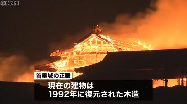 31日未明、沖縄県の首里城で火事があり、正殿などが全焼し、午前7時現在も延焼中。