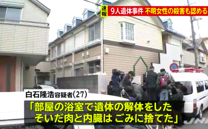 2017年10月30日、神奈川県座間市にあるアパートの一室から男性1人、女性8人の合計9人に及ぶ遺棄された遺体が発見されました。