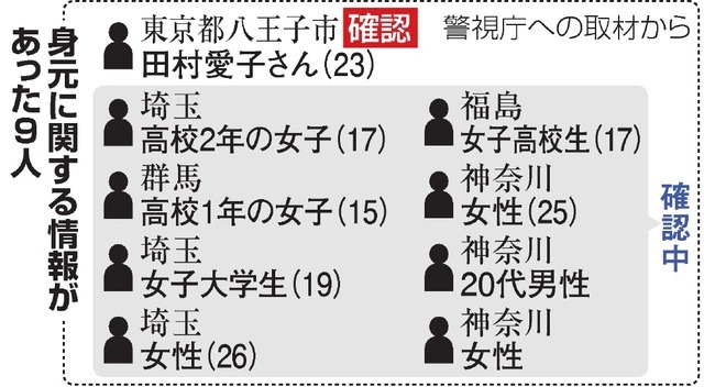 田村さん以外がどこまで公表されるのかな引用元:【座間9遺体】警視庁が全員の身元情報把握 DNA鑑定も112:名無しさん@1周年 : 2017/11/06(月)22:09:39.18 ID: UT1psAZX0.net