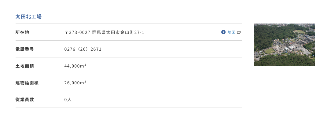 こちらの写真に写っているのはスバルのホームページ。工場の紹介で大田北工場の詳細が記載されているのですが、大田北工場だけ従業員数が0人という表記になっています。