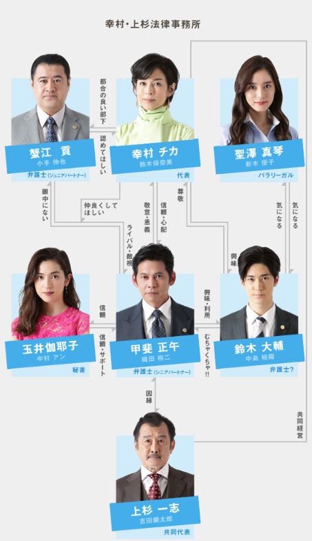 https://www.fujitv.co.jp/SUITS2/敏腕として知られる『幸村・上杉法律事務所』のパートナー弁護士・甲斐正午(織田裕二)は、代表の幸村チカ(鈴木保奈美)にも相談せず、ボストンにいたアソシエイトの鈴木大輔(中島裕翔)を突然呼び戻す。
