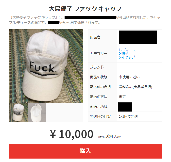 なんと、大島優子が被っていた事で話題になった「FUCK」という文字を丁寧にあしらえた手製のキャップを出品するユーザーも。