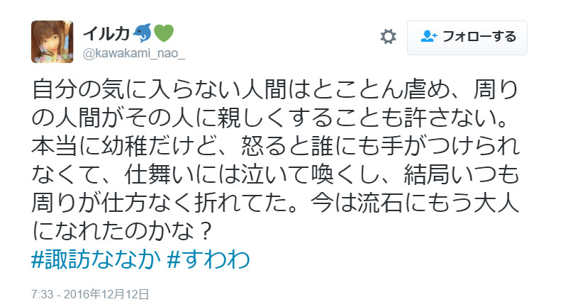 実際書かれていた内容は、諏訪ななかさんを嫌いな人が捏造した可能性もあり、正しいものかはわかりません。