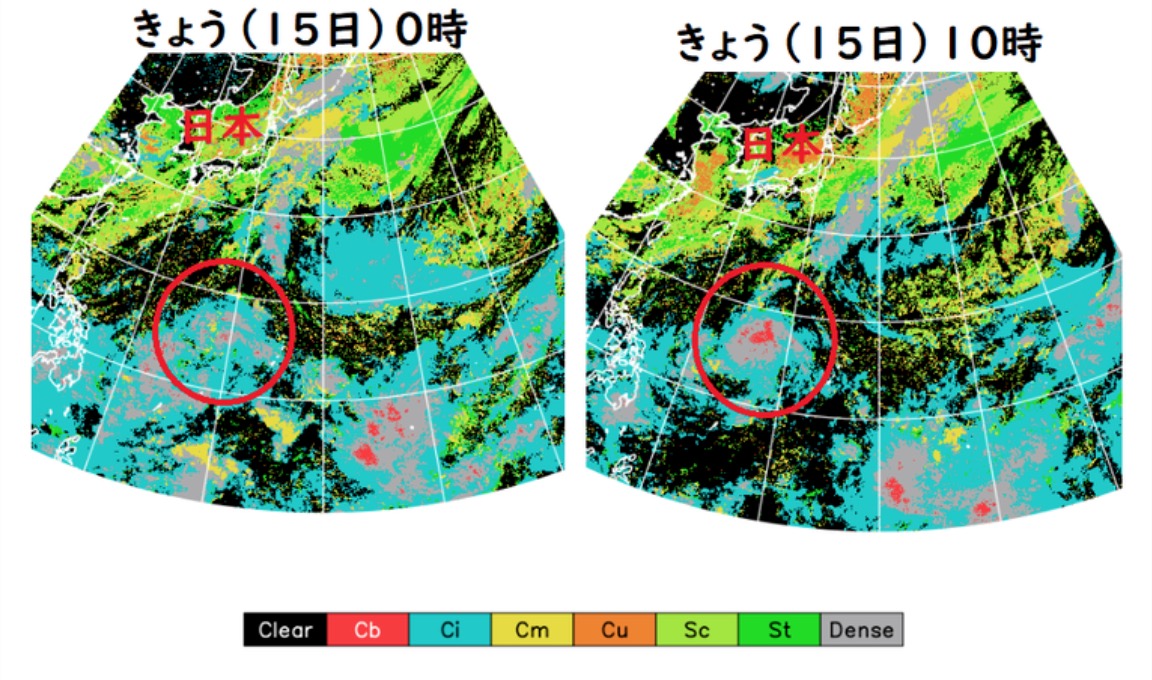 昨日から発表されている気象庁の予想天気図では、特に発生が見込まれていませんでしたから、予想以上に雲域が発達してきている状況です。