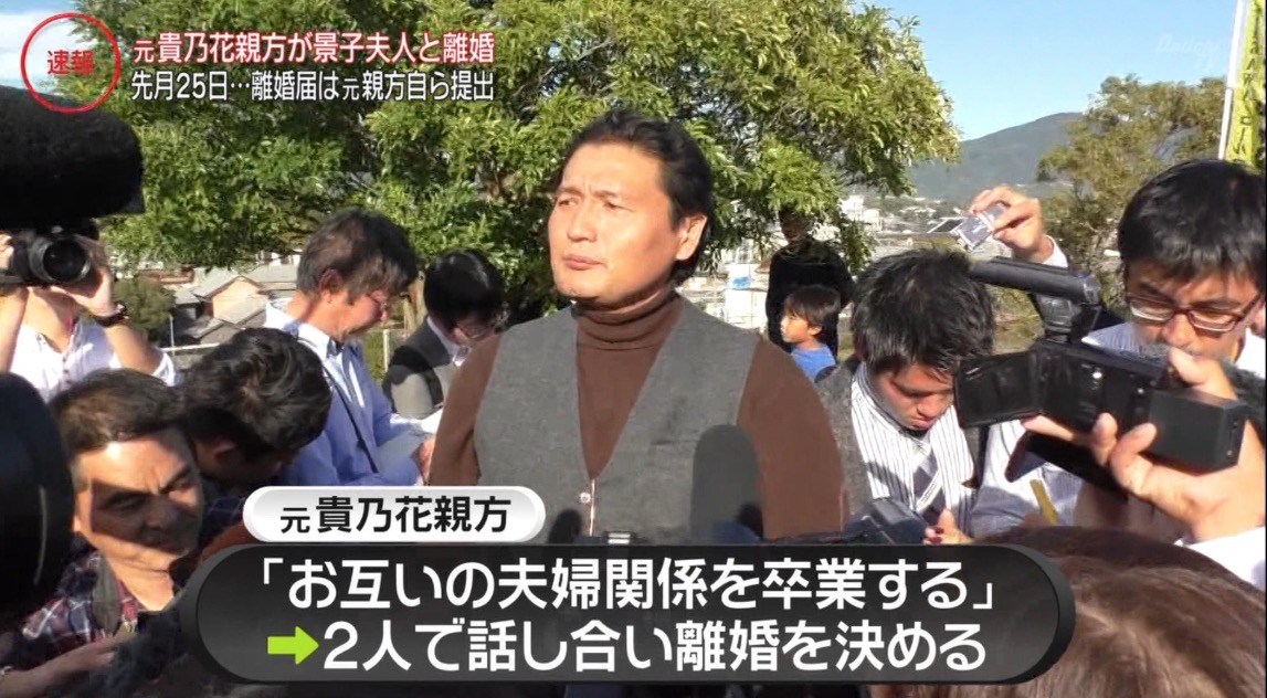 貴乃花部屋が消滅したことで、景子さんの女将さん業がなくなったことも離婚理由の一つかと聞かれると「間接的には」と認め「これまで部屋の女将として、奥さんとして、現役の時は横綱の奥さんとして肩身狭い思いしてきたでしょうから、これからは自分の道を行って欲しい」「本業支えながら辛い、きついお思いもしてきたでしょうからこれからの人生、元家内も(年齢が)50ちょい、これからゆっくりいけるんじゃないかな」と、景子さんを思いやる言葉を述べていた。