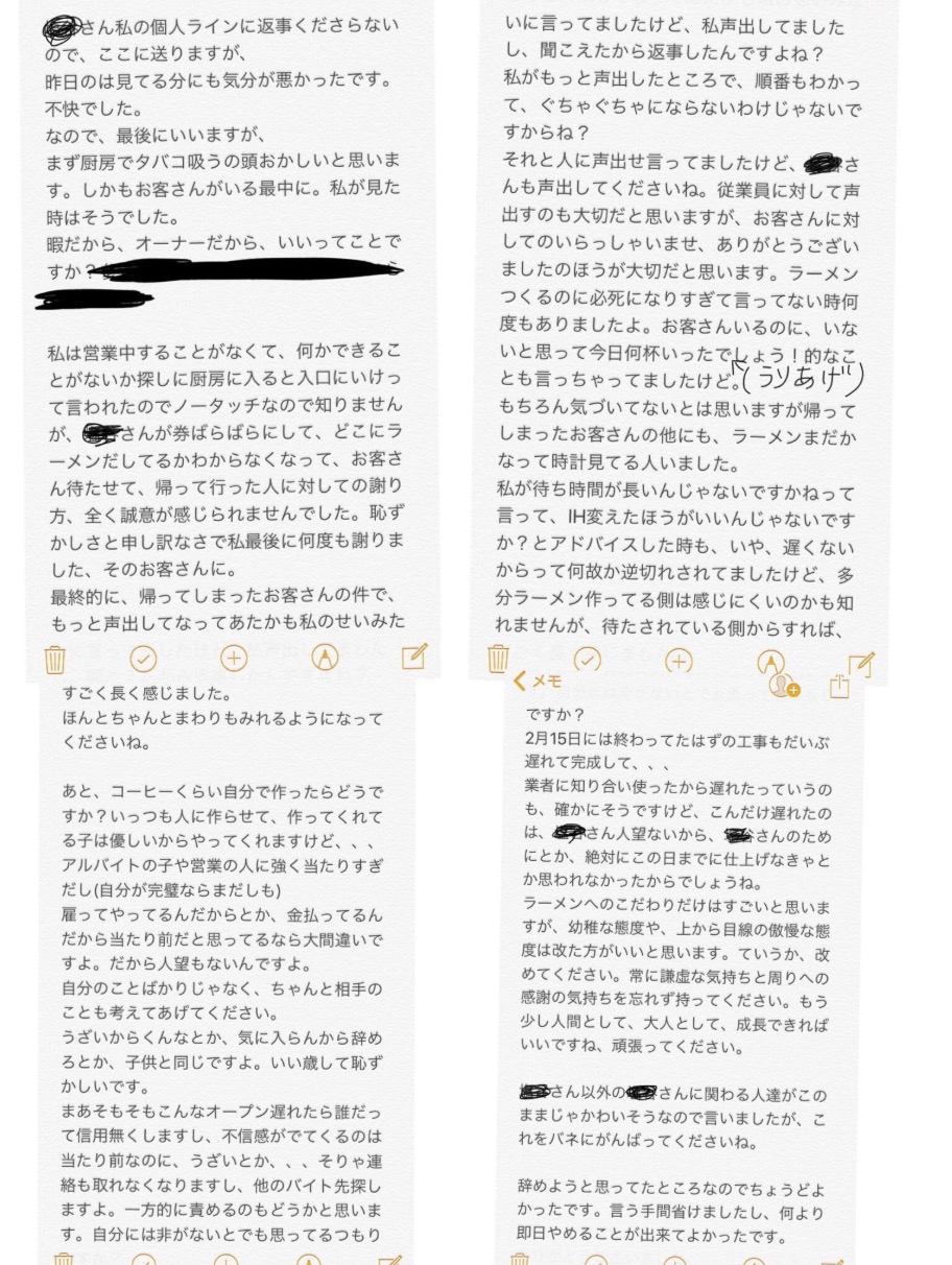 「麺屋いさむ」の従業員が退職する際、紙を投げつけられ暴言を吐かれたよう。