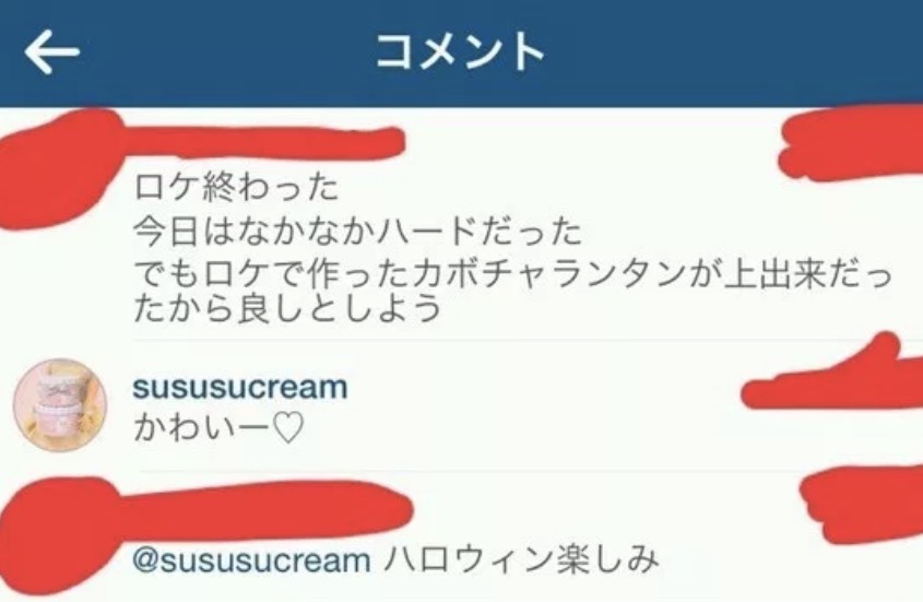 モザイクがかかっているアカウントが田中樹さんのアカウント。