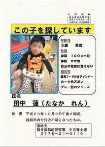 まずは一刻も早く行方不明になっている田中蓮くんが無事、発見・保護される事を祈ります。最後までお読み頂きありがとうございました。