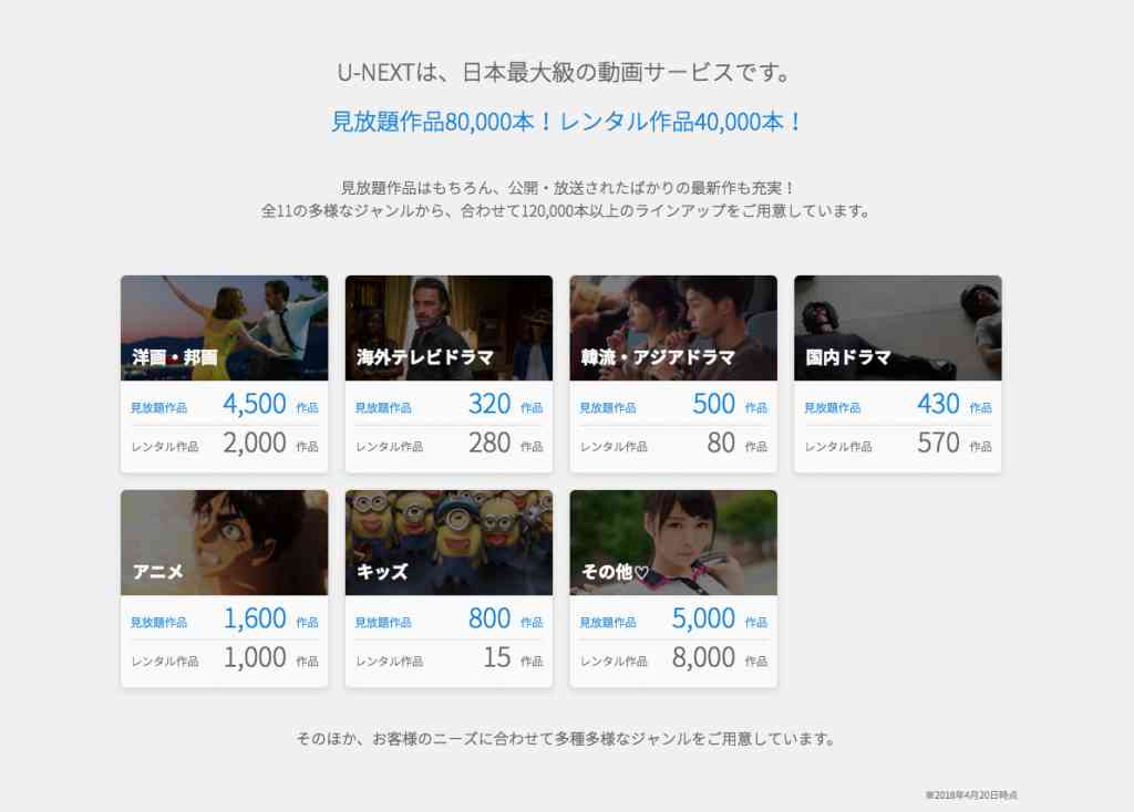 見放題作品も8万本あることを考えるとかなり満足のいくラインナップです。