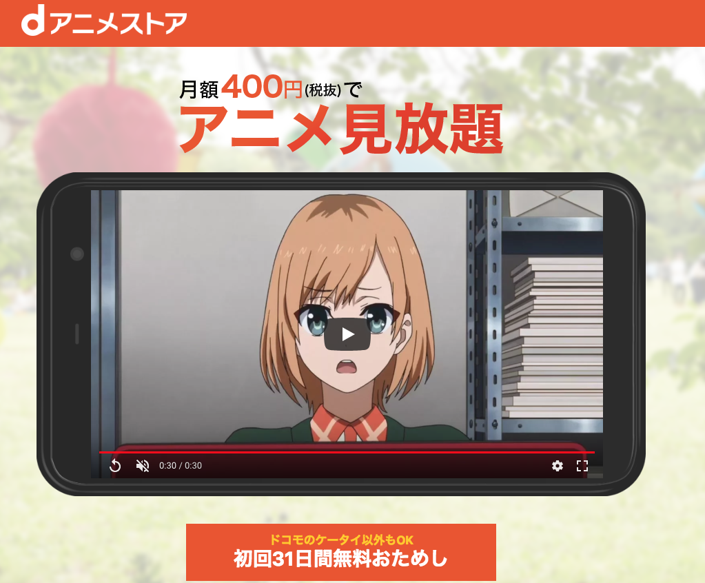 dアニメストアは、docomoが運営するアニメ作品を中心とした動画配信サイト。料金は月額440円(税込)と超格安で、スマホのキャリアがauやSoftBankの人も使うことができます。
