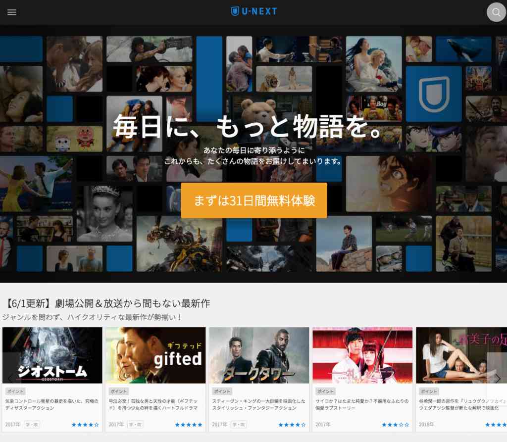 U-NEXTは上場企業の株式会社U-NEXTが運営している動画配信サービス。他のサービスと比べると知名度が低いイメージですが、最近かなり勢いがある動画ストリーミングサービスです。