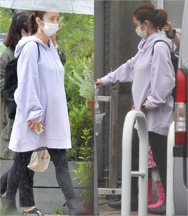 すでに安定期は過ぎているようで、ふっくらとしたお腹で歩く姿がキャッチされています。